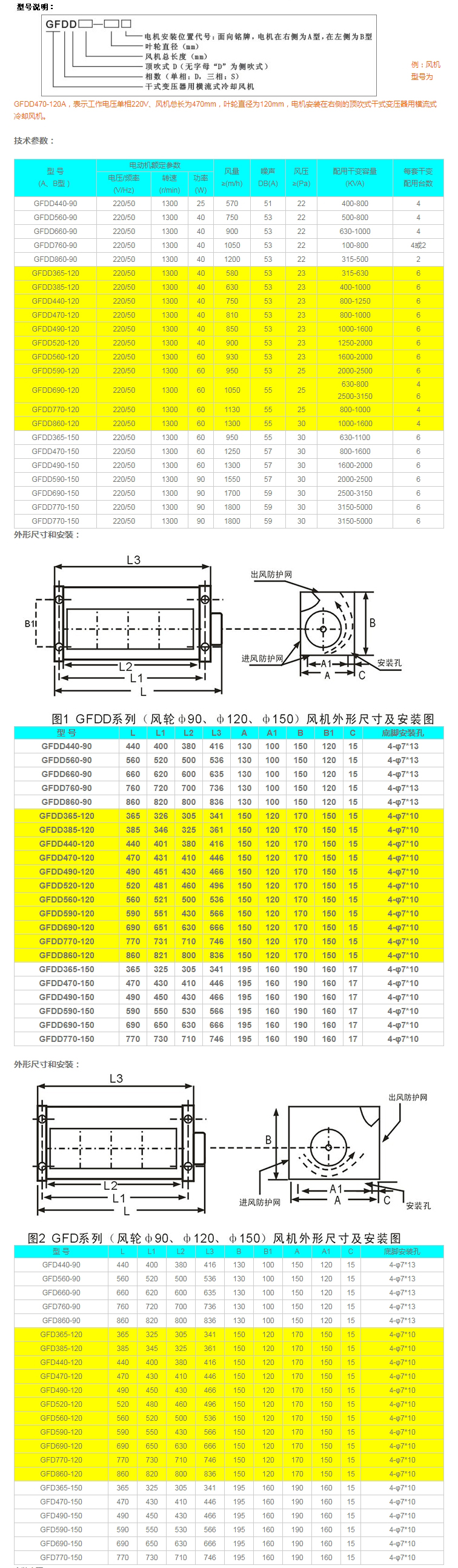 產(chǎn)品概述: GFDD系列頂吹式干式變壓器用橫流式冷卻風機(下稱:干變橫流冷卻風機)主要用于干式變壓器冷卻增容,及電子設(shè)備、配電柜、高低壓開關(guān)柜等強迫送風冷卻。干式變壓器配上本風機散熱后,可增容40~50%運行,從而大大提高干式變壓器的承載能力,并延長了干式變壓器的使用壽命,是國內(nèi)外廠家普遍采用的最經(jīng)濟有效的方式。 本產(chǎn)品嚴格按JB/T8971-1999《干式變壓器用橫流式冷卻風機》設(shè)計生產(chǎn)。電機定、轉(zhuǎn)子鐵芯采用優(yōu)質(zhì)冷軋硅鋼片;低噪音軸承;葉輪采用鋁合金表面電泳處理,再通過精細的動平衡調(diào)校;左右端板采用不銹鋼板沖壓成型,進風板、出風板和導風板采用鋁合金型材搭扣組合;整個風機結(jié)構(gòu)合理,造型美觀,具有風量大、噪聲小、溫升低、壽命長、運行平穩(wěn)、安裝方便等特點。 工作原理: 該系列冷卻風機用于干式變壓器時,風機置于變壓器線圈下部兩側(cè),將冷風直接吹進變壓器的線圈高、低壓冷卻風道,散熱效果明顯,可保障變壓器的正常運行并延長其使用壽命。(風機開、停及變壓器的超溫報警、超溫跳閘等功能有溫控裝置提供)。 |