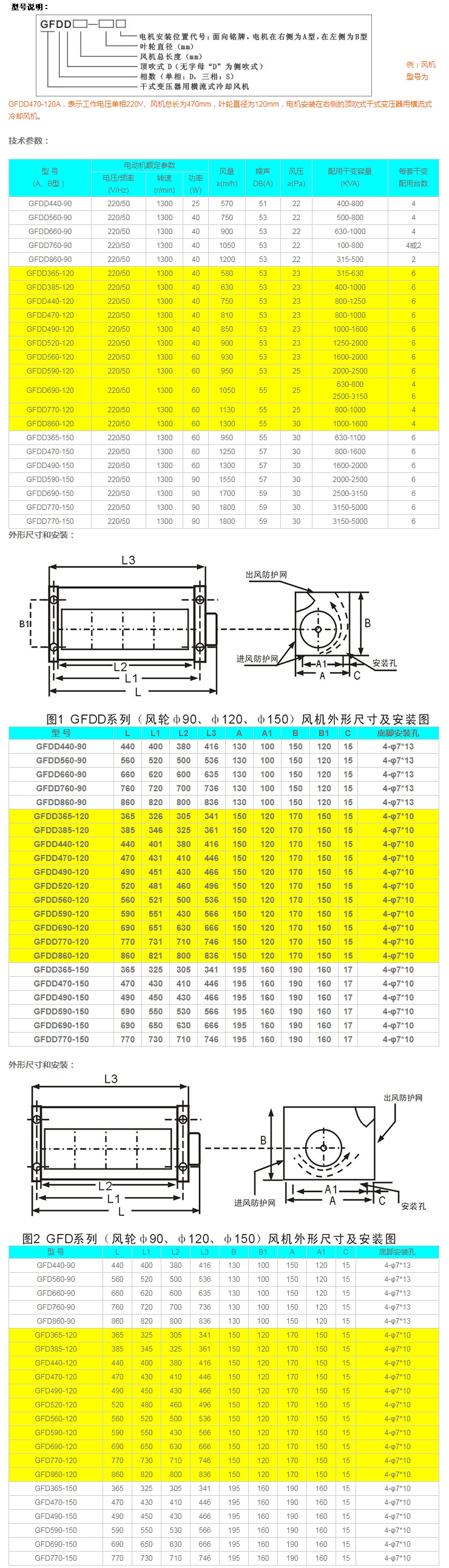 產(chǎn)品概述: GFDD系列頂吹式干式變壓器用橫流式冷卻風機(下稱:干變橫流冷卻風機)主要用于干式變壓器冷卻增容,及電子設備、 配電柜、高低壓開關柜等強迫送風冷卻。干式變壓器配上本風機散熱后,可增容40~50%運行,從而大大提高干式變壓器的承載能力,并延長 了干式變壓器的使用壽命,是國內外廠家普遍采用的最經(jīng)濟有效的方式。 本產(chǎn)品嚴格按JB/T8971-1999《干式變壓器用橫流式冷卻風機》設計生產(chǎn)。電機定、轉子鐵芯采用優(yōu)質冷軋硅鋼片;低噪 音軸承;葉輪采用鋁合金表面電泳處理,再通過精細的動平衡調校;左右端板采用不銹鋼板沖壓成型,進風板、出風板和導風板采用鋁合金 型材搭扣組合;整個風機結構合理,造型美觀,具有風量大、噪聲小、溫升低、壽命長、運行平穩(wěn)、安裝方便等特點。 工作原理: 該系列冷卻風機用于干式變壓器時,風機置于變壓器線圈下部兩側,將冷風直接吹進變壓器的線圈高、低壓冷卻風道,散 熱效果明顯,可保障變壓器的正常運行并延長其使用壽命。(風機開、停及變壓器的超溫報警、超溫跳閘等功能有溫控裝置提供)。 |